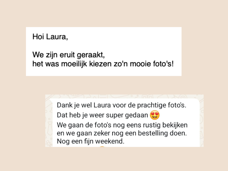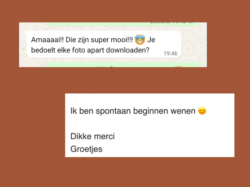 6. Mag ik echt doen met de foto's wat ik wil? Zeker! ze zijn voor altijd van jou. Meer nog, je bent niet verplicht om mijn naam te vermelden als je de foto's deelt. Het is wel heel leuk als je me vermeld, maar dus geen must!